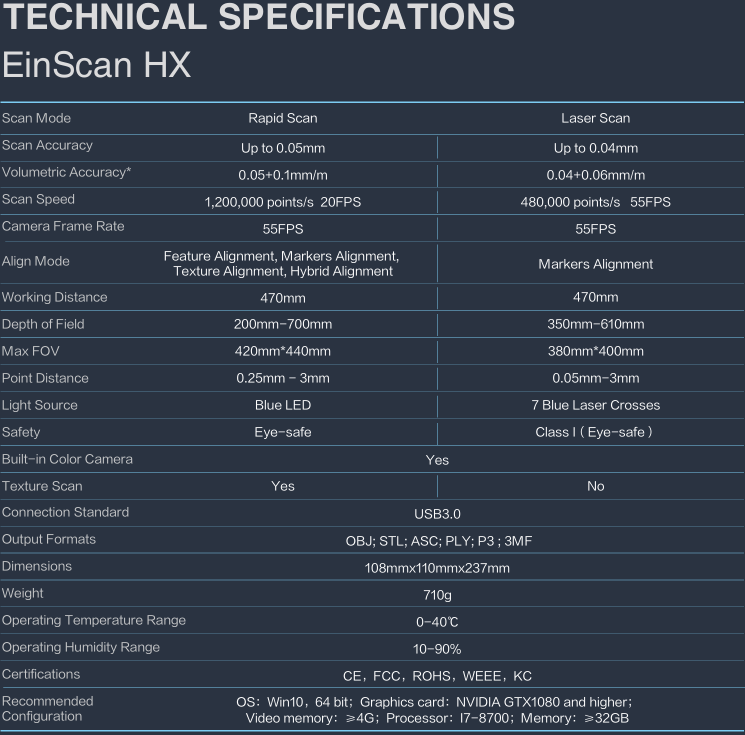 Based on years of 3D measurement experience and market demand, SHINING 3D innovatively integrates blue LED light and blue laser into EinScan HX handheld 3D scanner. The hybrid laser and LED light sources make EinScan HX compatible with a wider range of object sizes, meeting multiple needs of users. High efficiency and reliable result give EinScan HX more application possibilities.