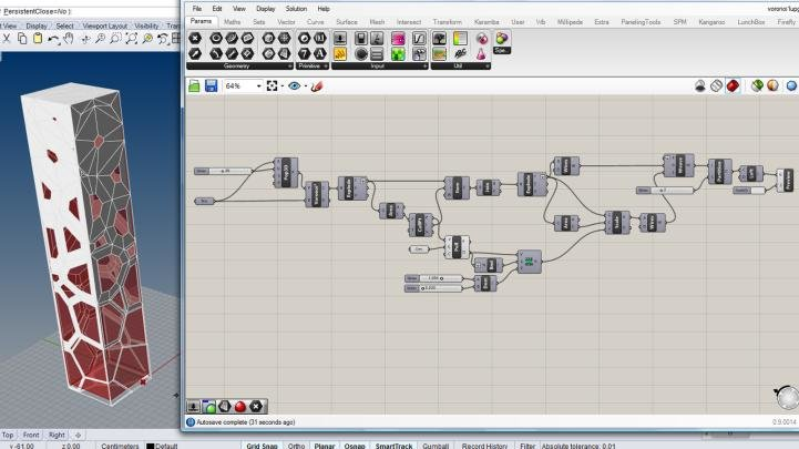For designers who are exploring new shapes using generative algorithms, Grasshopper® is a graphical algorithm editor tightly integrated with Rhino’s 3D modeling tools. Unlike RhinoScript, Grasshopper requires no knowledge of programming or scripting, but still allows designers to build form generators from the simple to the awe-inspiring.